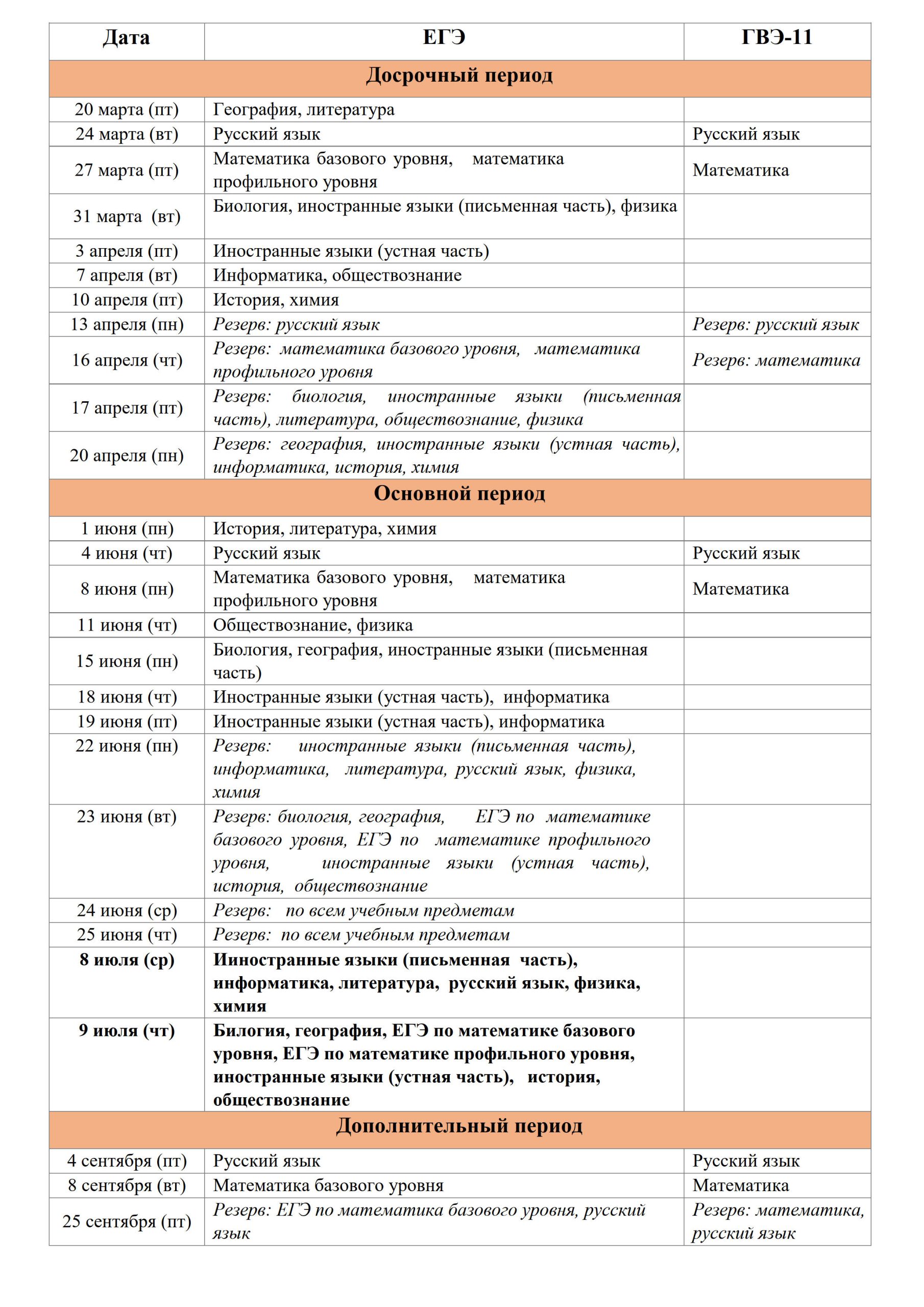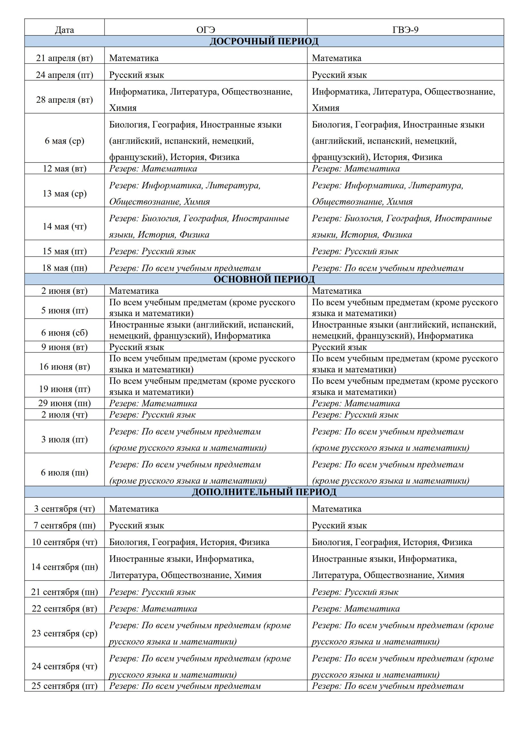 Расписание ГИА-9